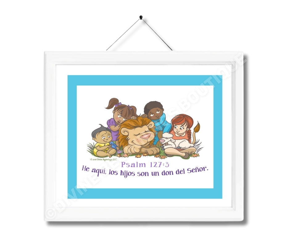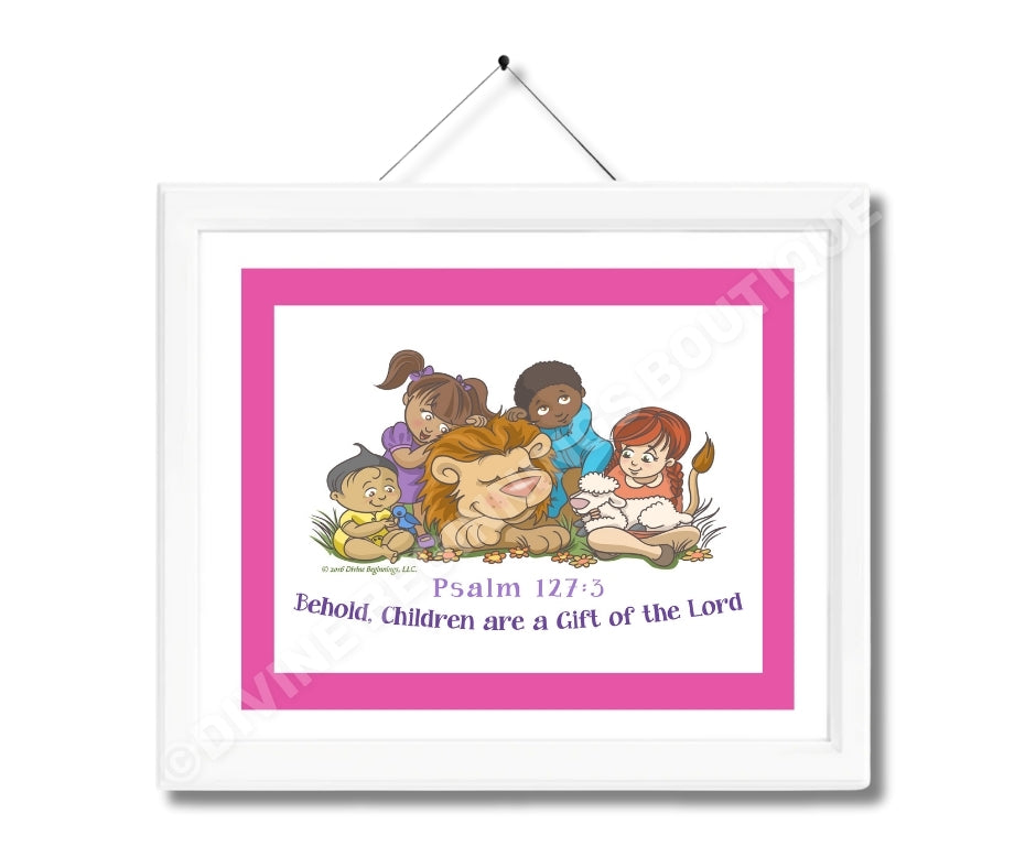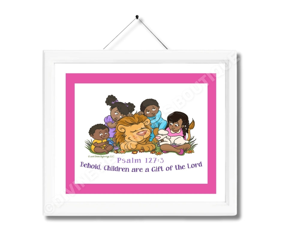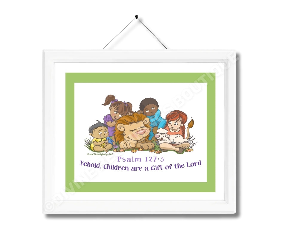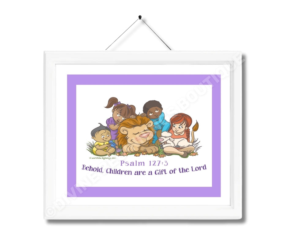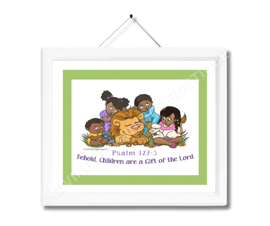Our exclusive Behold, Children are a Gift From God Christian artwork is based on Biblical scripture: "Children are a heritage from the Lord, offspring a reward from him." Psalm 127:3
