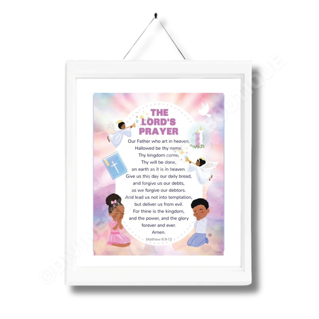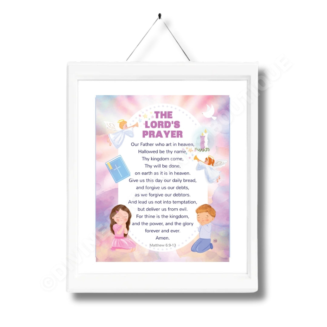 The Lord's Prayer artwork comes matted with a white border and frame-ready ~ perfect for hanging on a wall or displaying bedside in your child's room.