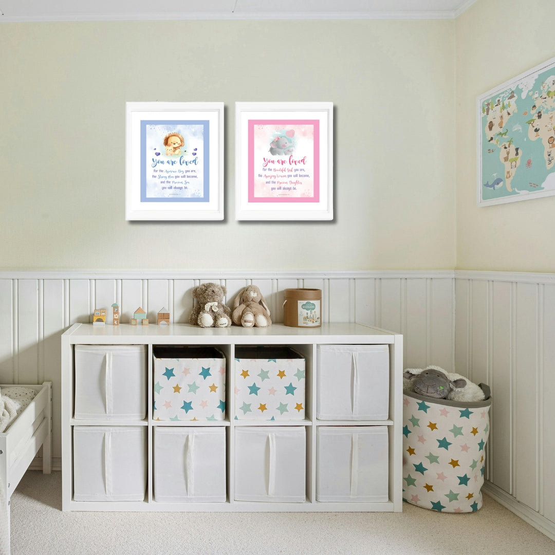 Show your little daughter or son how much they mean to you today, tomorrow, and always - with our exclusive "You Are Loved" artwork. Our custom-design wall art uplifts your special little one in a way that only a parent can!
