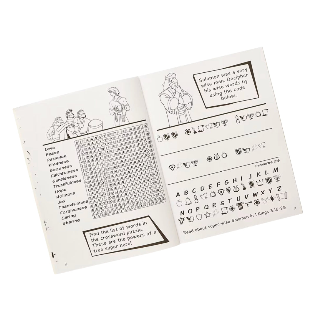 The Super Heroes Activity Book invites kids into an exciting, hands-on journey through the Bible—where ordinary people become extraordinary through God’s power.